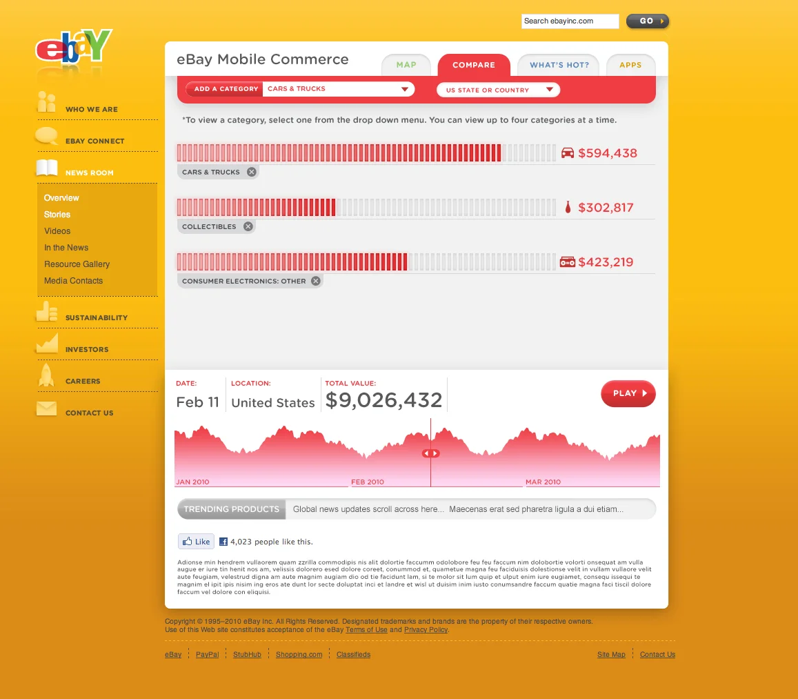 An interactive data visualization housing eBay's mobile commerce data from 2010-2011.